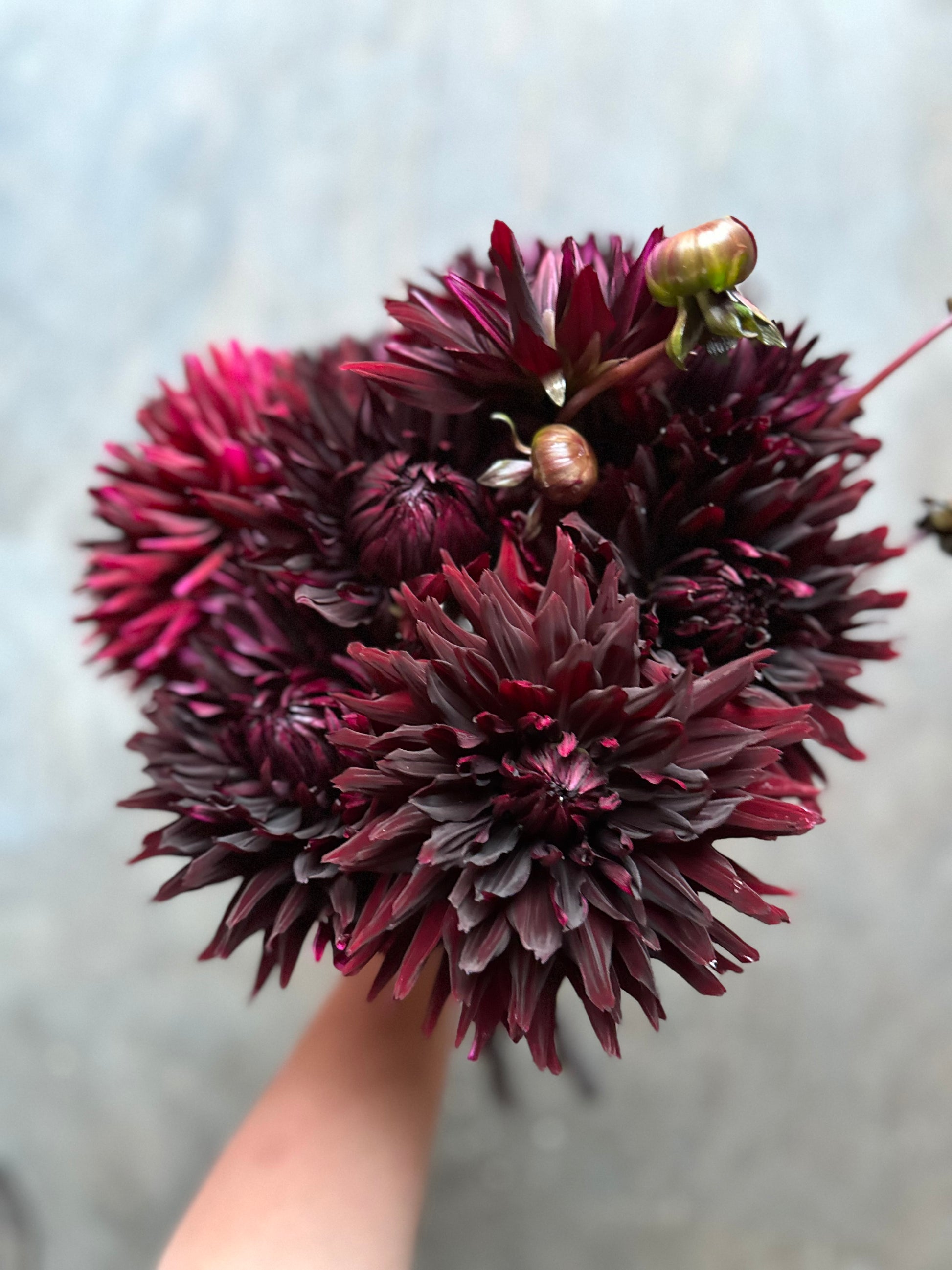 Gorgeous deep burgundy semi cactus dahlia that is consistently blooming and with dark foliage. A must grow!