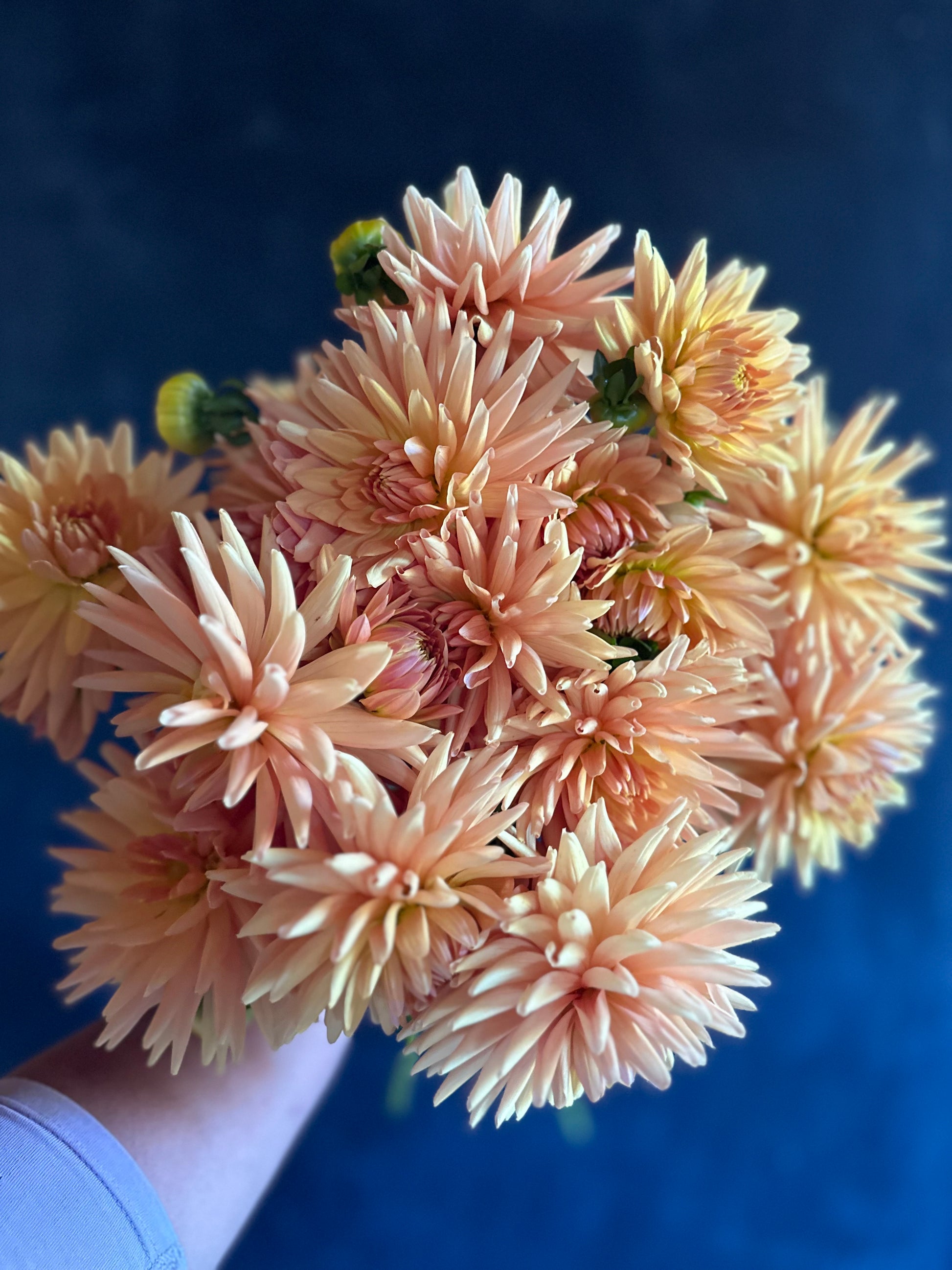 Such a beautiful light orange cactus dahlia and a perfect size for arrangements.