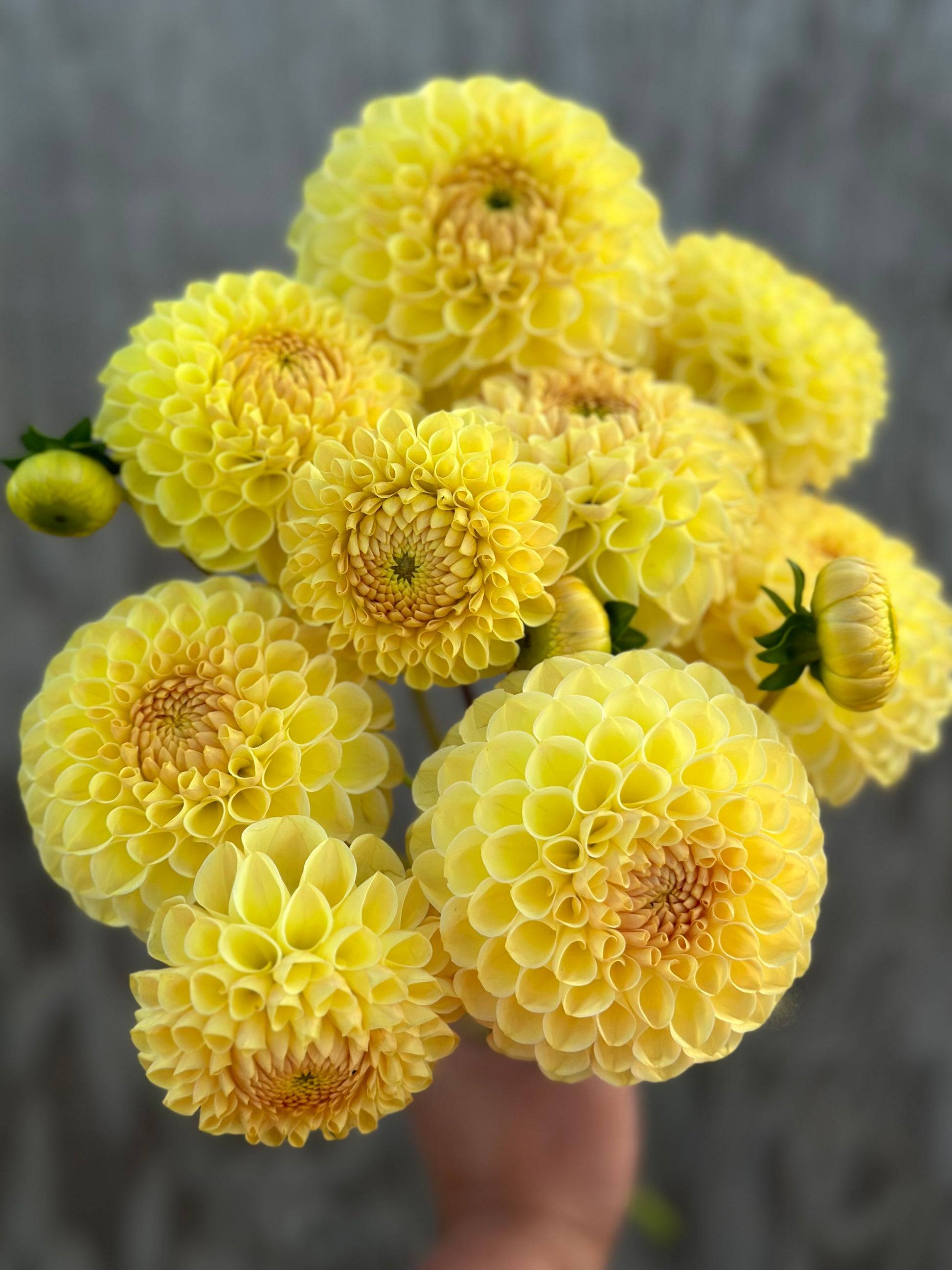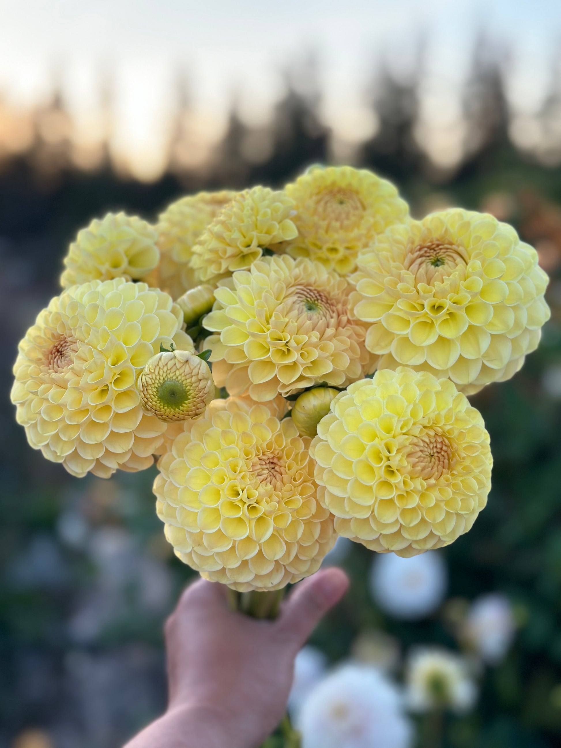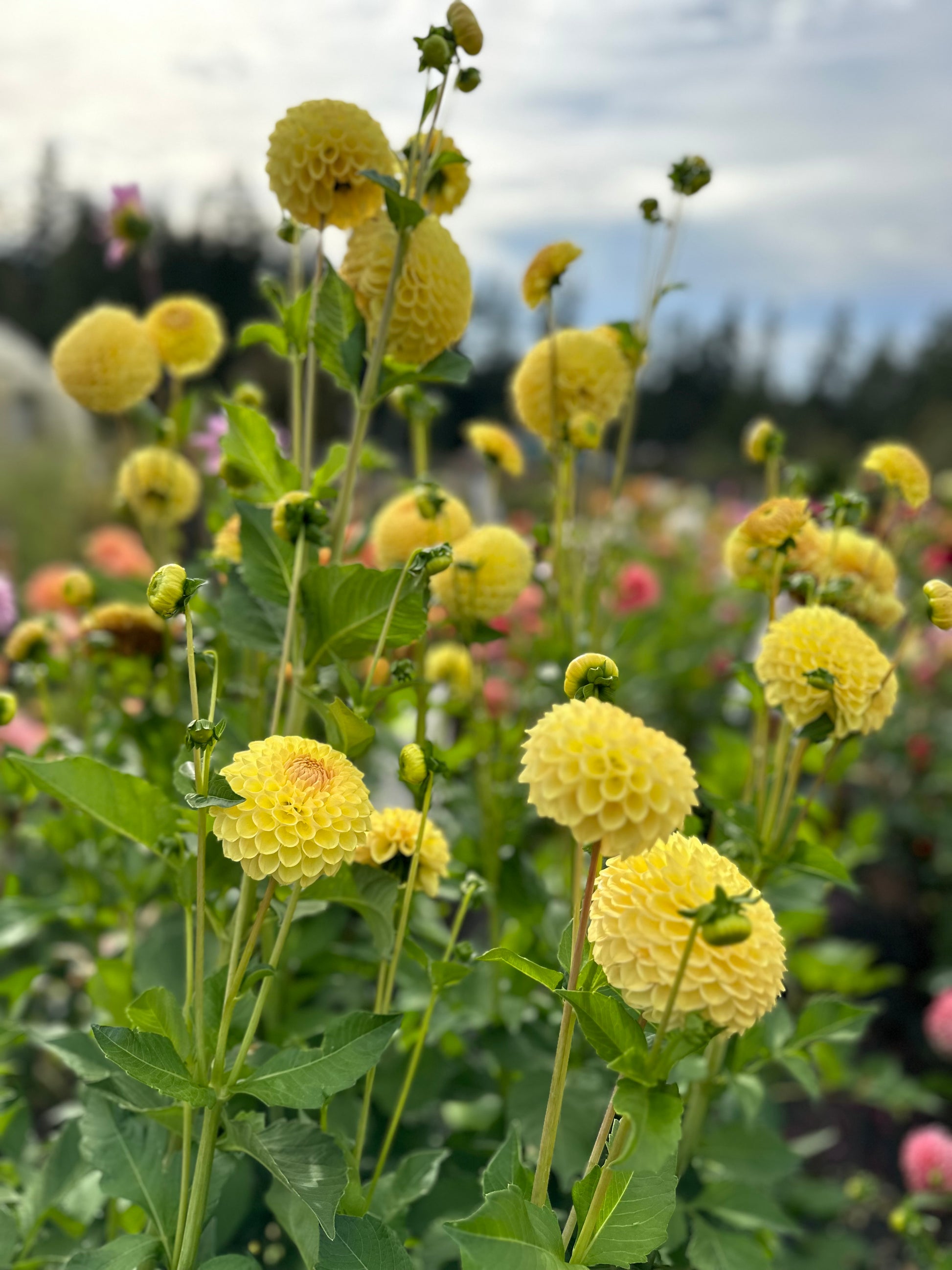Yellow isn’t my preferred color, so I tend to stay away from it but guess who loves yellow? Yup, my dear husband, Sean (it's his favorite color by the way). One time, I sent him to the Puget Sound Dahlia Association’s annual tuber sale while I was out of the country, armed with a list of dahlias to buy (I know, he is a trooper). He came home with not one, not two but a handful of yellow varieties (Lord save me).