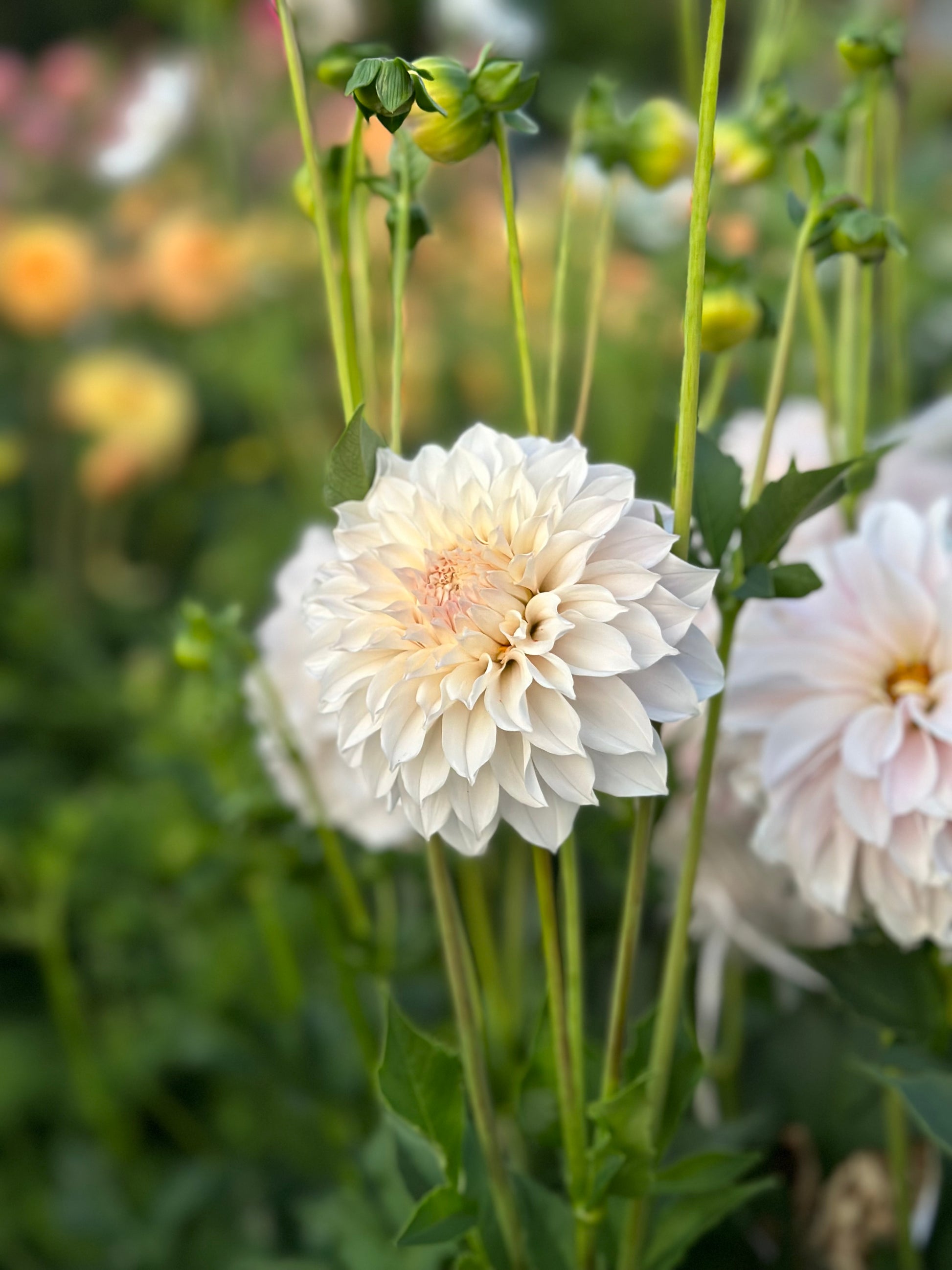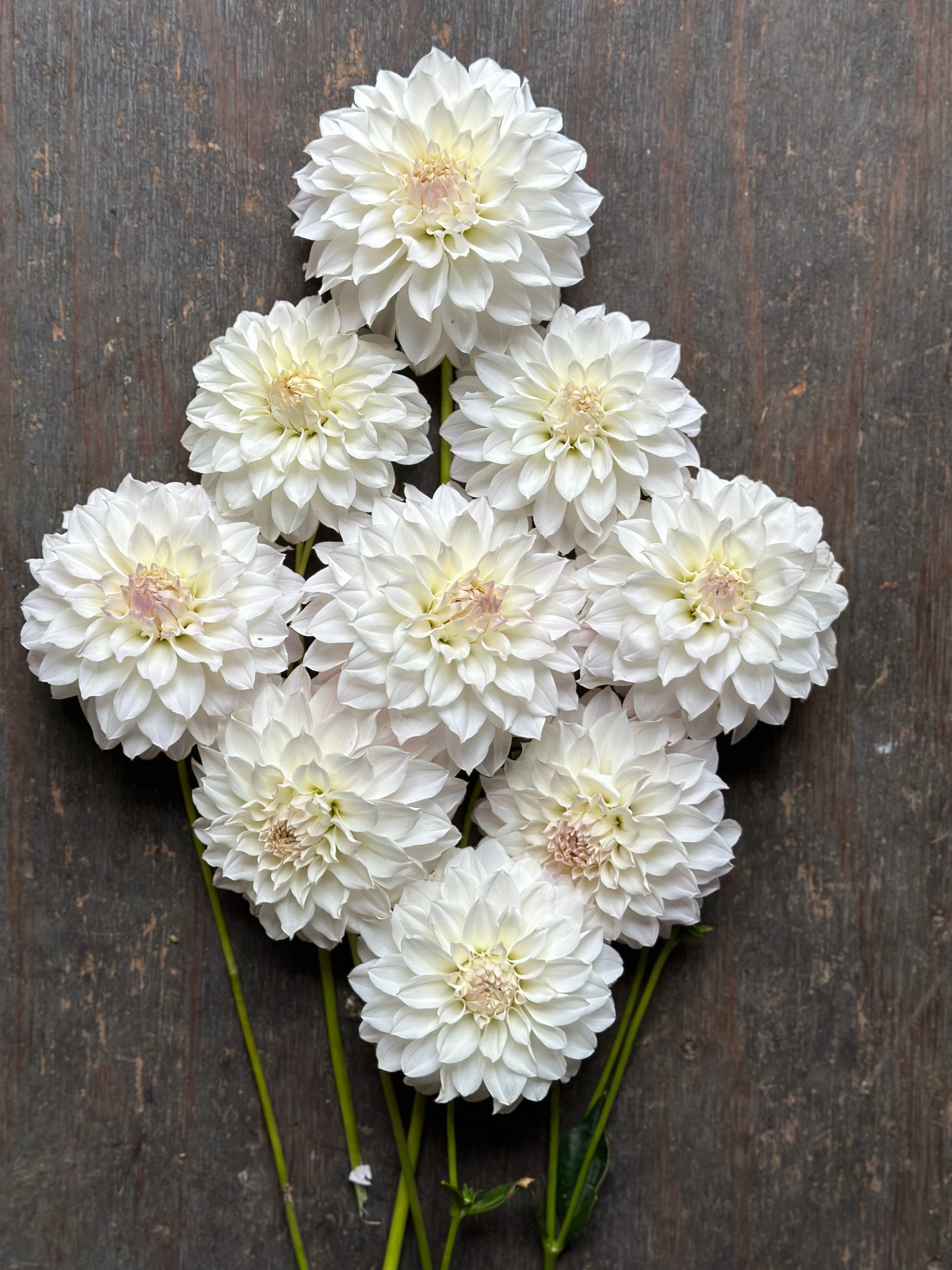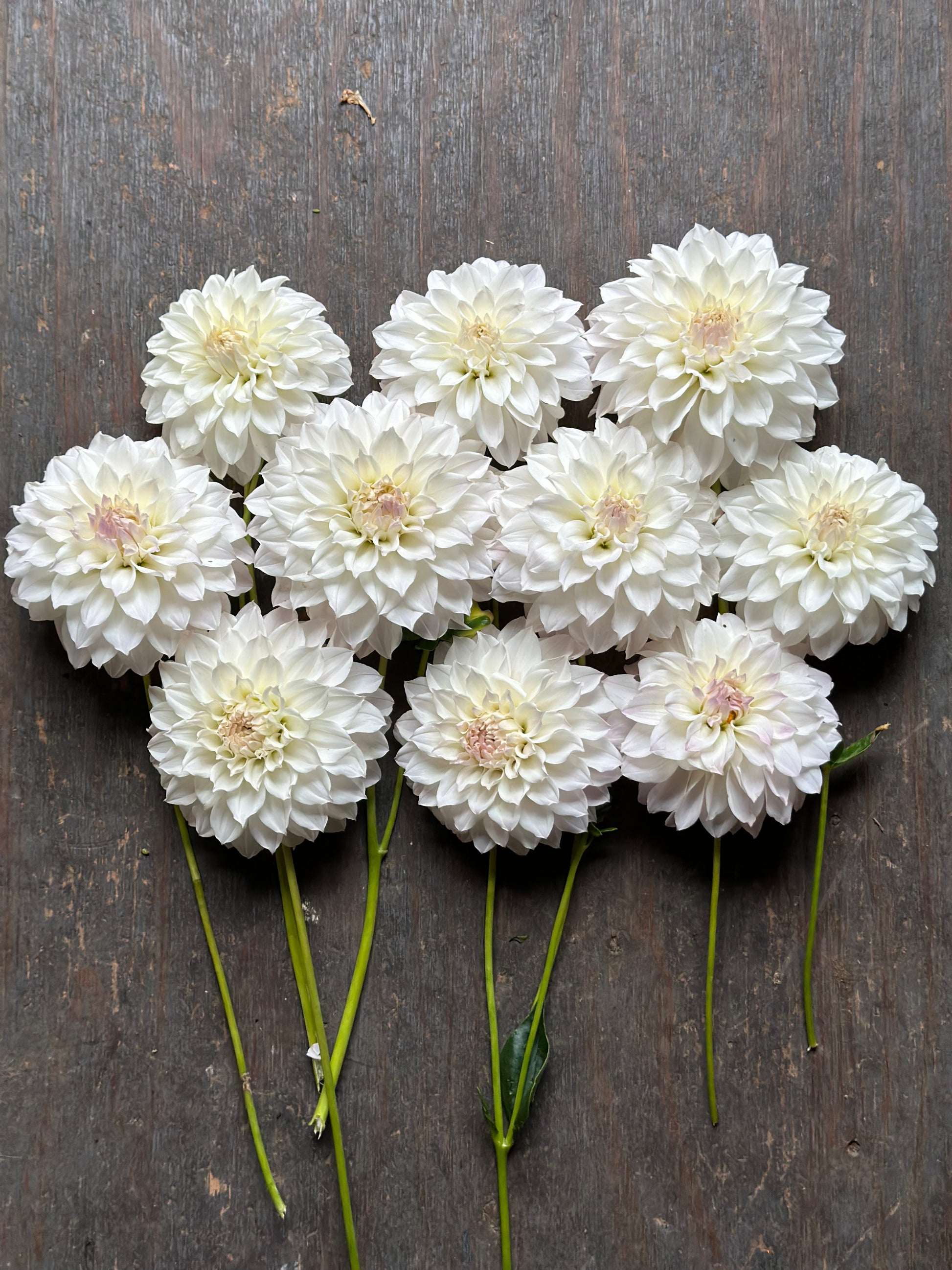 This seedling was our go to for events such as weddings. It is super vigorous with long stems. It puts out gorgeous 4" blush blooms growing at about 4- 4.5 feet tall. We were still debating if we should release this beauty because we felt it did not have enough petals but after careful consideration, a few friends telling us to keep growing it and to release it, we've decided to go ahead and ramp up production this year and release it for the 2026 season.
