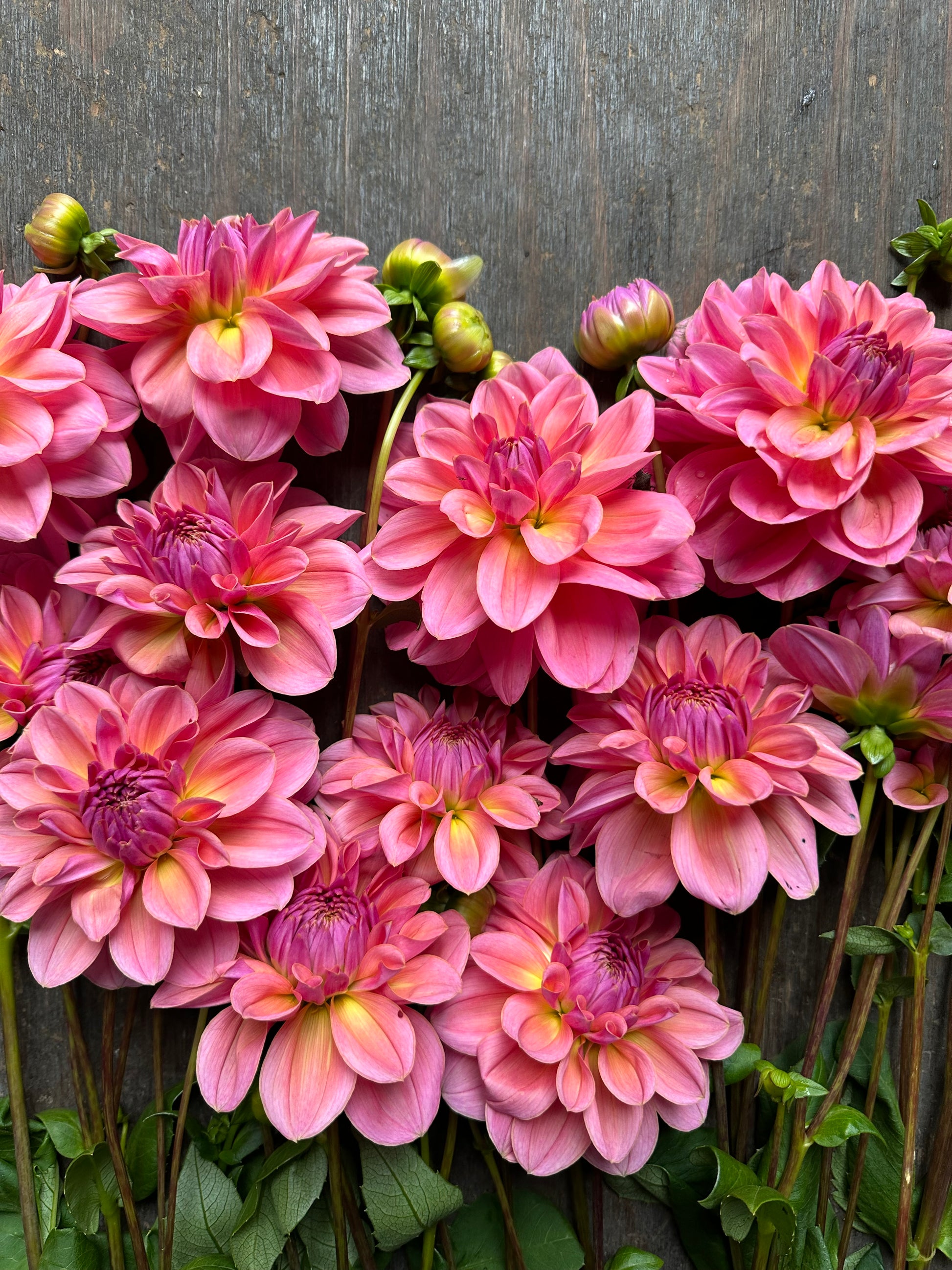 One of my favorites because it is so floriferous. The color is vibrant with a hint of dust and coral.