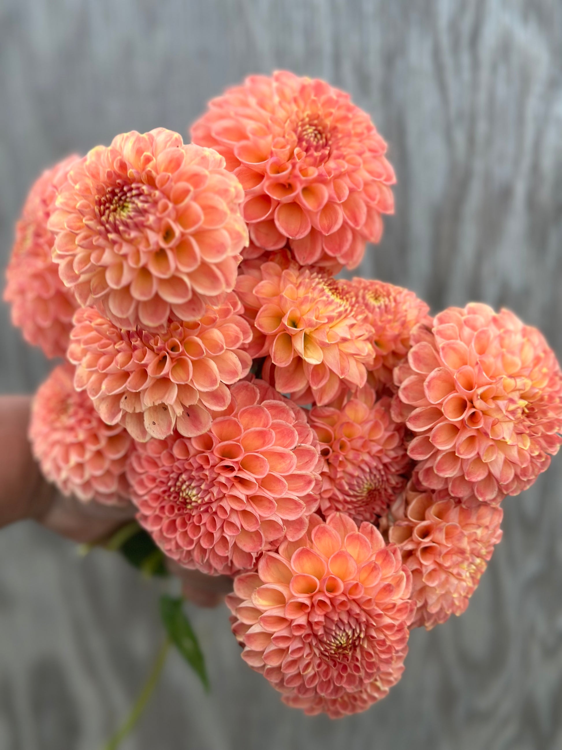 Gorgeous salmon peach blooms with strong stems and perfect for market bouquets.